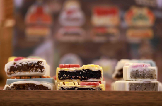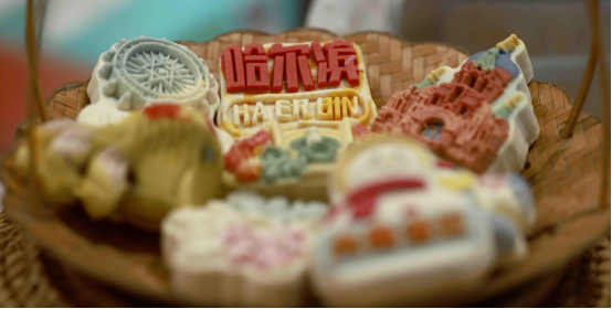 中秋节临近,哈尔滨市的一家蛋糕店,推出多款融合了冰城地标建筑的文创月饼。该套月饼共有八枚,由哈尔滨站、大雪人、雪花摩天轮以及雪花、风筝等造型组成,每一款月饼都做得细腻、逼真。添加了莲蓉蛋黄、咸蛋黄肉松、粒粒红枣、高果肉山楂、低甜莲蓉、桑葚黄精等馅料,口味丰富。