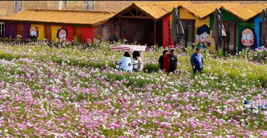 “太出片了!花海随风起伏,配上远处的风车,瞬间治愈所有疲惫。”游客李女士举起手机,记录下波斯菊与白色风车相映成趣的美丽画面。
