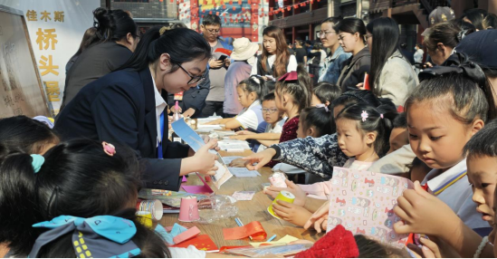 东风区的佳木斯市博物馆内,百余名来自第六小学、第二十小学明德校区的学生与市民游客齐聚一堂,共庆华诞。在非遗传承人指导下,孩子们亲手制作鱼皮书签、挂饰,拓印并搭建“撮罗子”模型,并在讲解中深入了解“八女投江”的英雄事迹,接受红色精神洗礼。