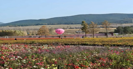 郊区达勒花海景区作为市民“近”享假日的优选地,以51万平方米的花海与连绵林海,打造出独具魅力的“城市后花园”。景区内77万株、40余种花卉争奇斗艳,红色百日草热情奔放,紫色鼠尾草清雅脱俗,“云朵天梯”装置前更是打卡者络绎不绝。