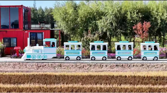 庄园内,观光小火车穿行于金色稻田与翠绿草坪之间;巨型稻田画以大地为纸、禾苗为墨,绘出丰收图景,引得游客纷纷驻足拍照。儿童游乐区里,孩子们在蹦床、秋千上尽情嬉戏,欢声笑语不绝于耳。露营区内,帐篷错落有致,不少家庭围坐野餐,享受温馨亲子时光。登临观光塔远眺,稻浪与绿茵交织,构成一幅诗意田园画卷。