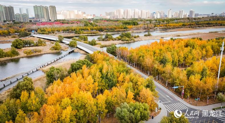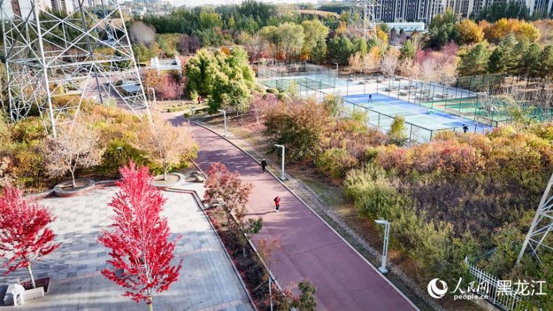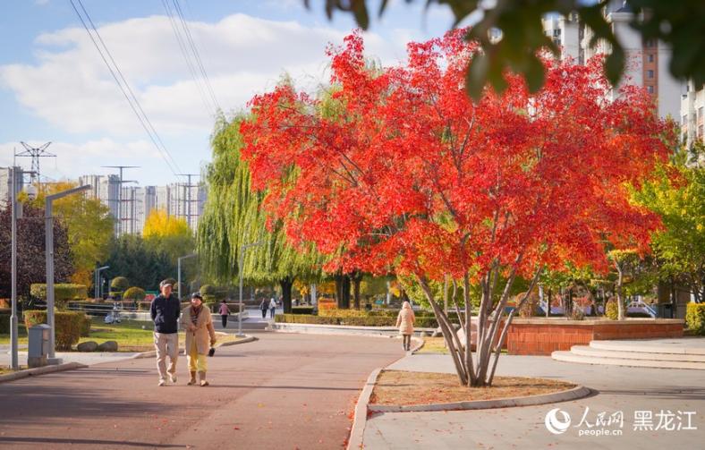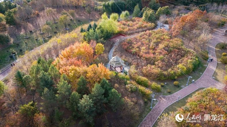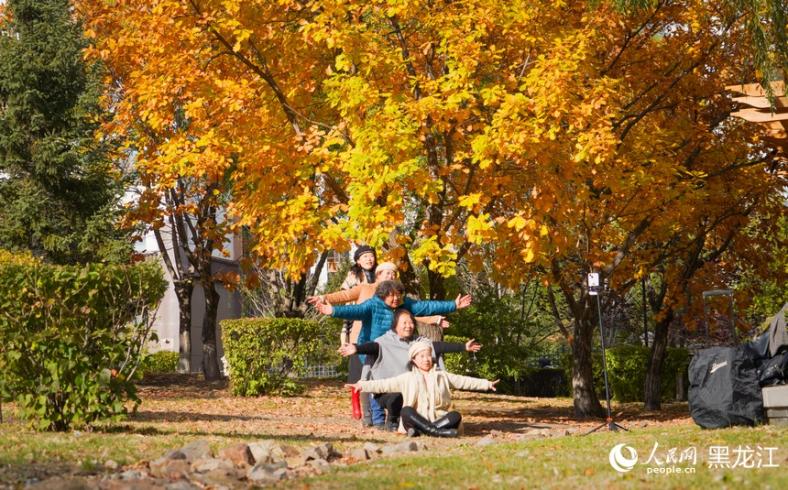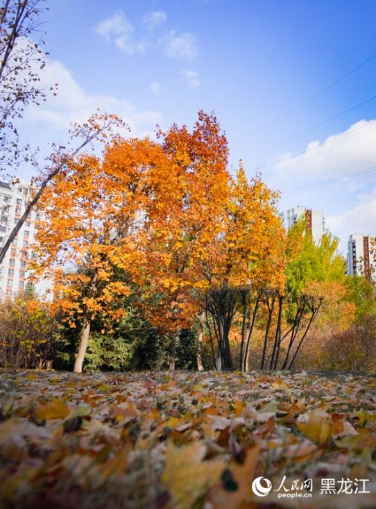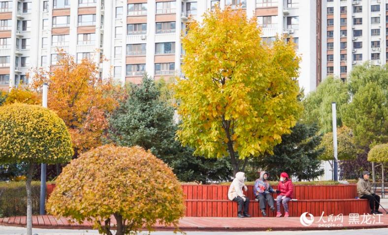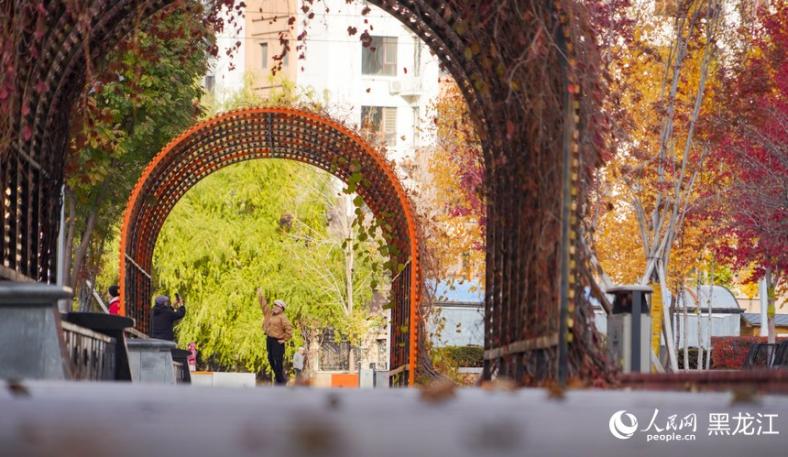 人民网哈尔滨10月22日电 深秋是哈尔滨一年里色彩丰富的季节,树上的叶子五彩斑斓,地面上也铺了一层落叶,如同打翻了的“调色盘”。许多市民在公园内散步休闲,观赏秋景,拍摄精彩瞬间,宛如置身于一幅油画中。