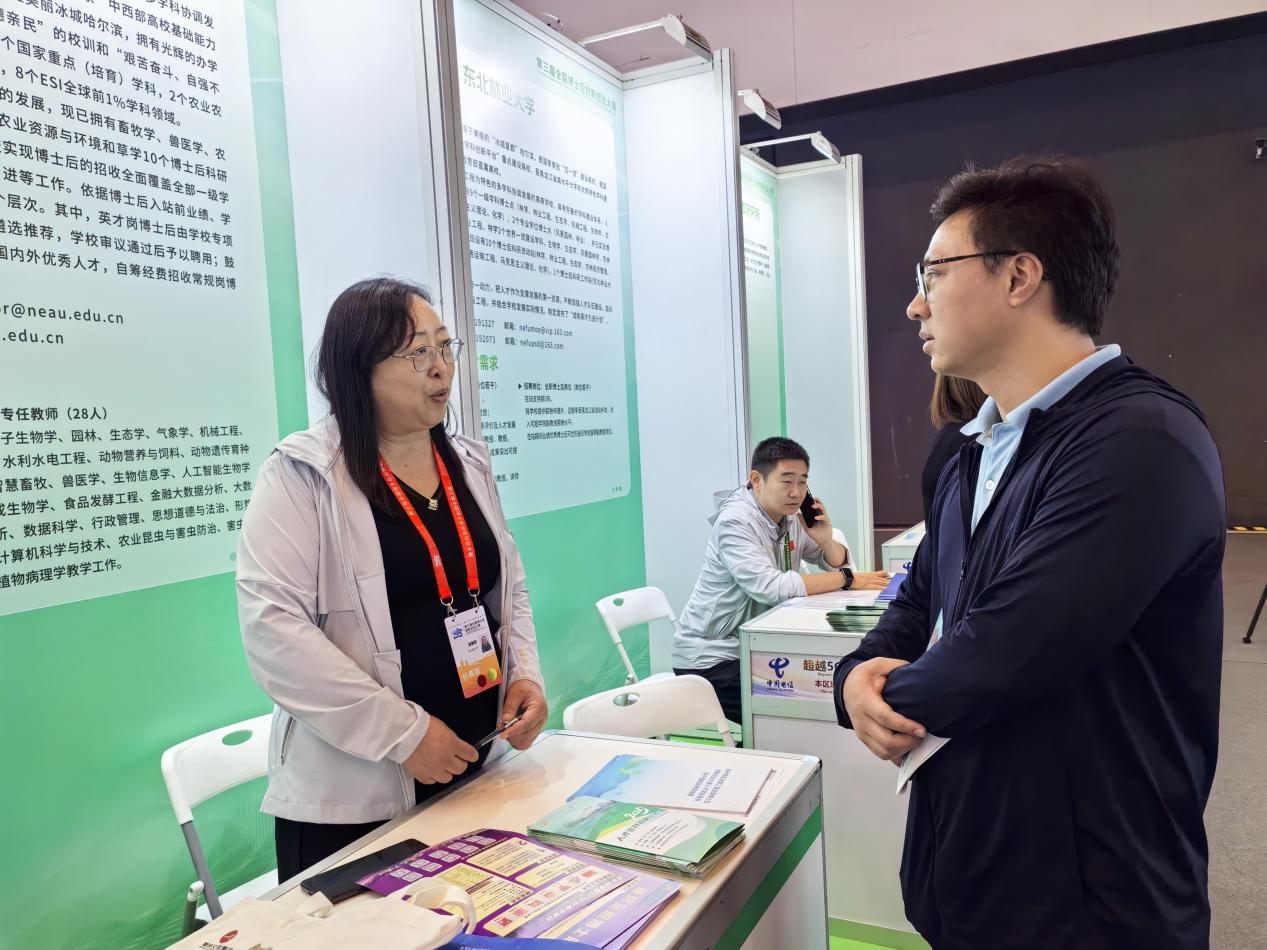 “东北农业大学高度重视青年师资队伍培养建设工作,大力实施全职博士后支持计划、青年领军人才支持计划和东农学者高层次人才支持计划,为青年师资提供良好的岗位待遇和高水平的科研平台;在职称评审中设立正常晋升、破格晋升和人才绿色通道,目前学校最年轻的教授是出生于1995年的。此次学校带来近40个招聘岗位,涉及畜牧学、兽医学、农业工程等12个领域,诚邀海内外优秀青年人才关注并加入,共同为服务国家和龙江科技发展贡献东农力量。”东北农业大学人事处人事科科长刘翠翠在现场接受记者采访时说。