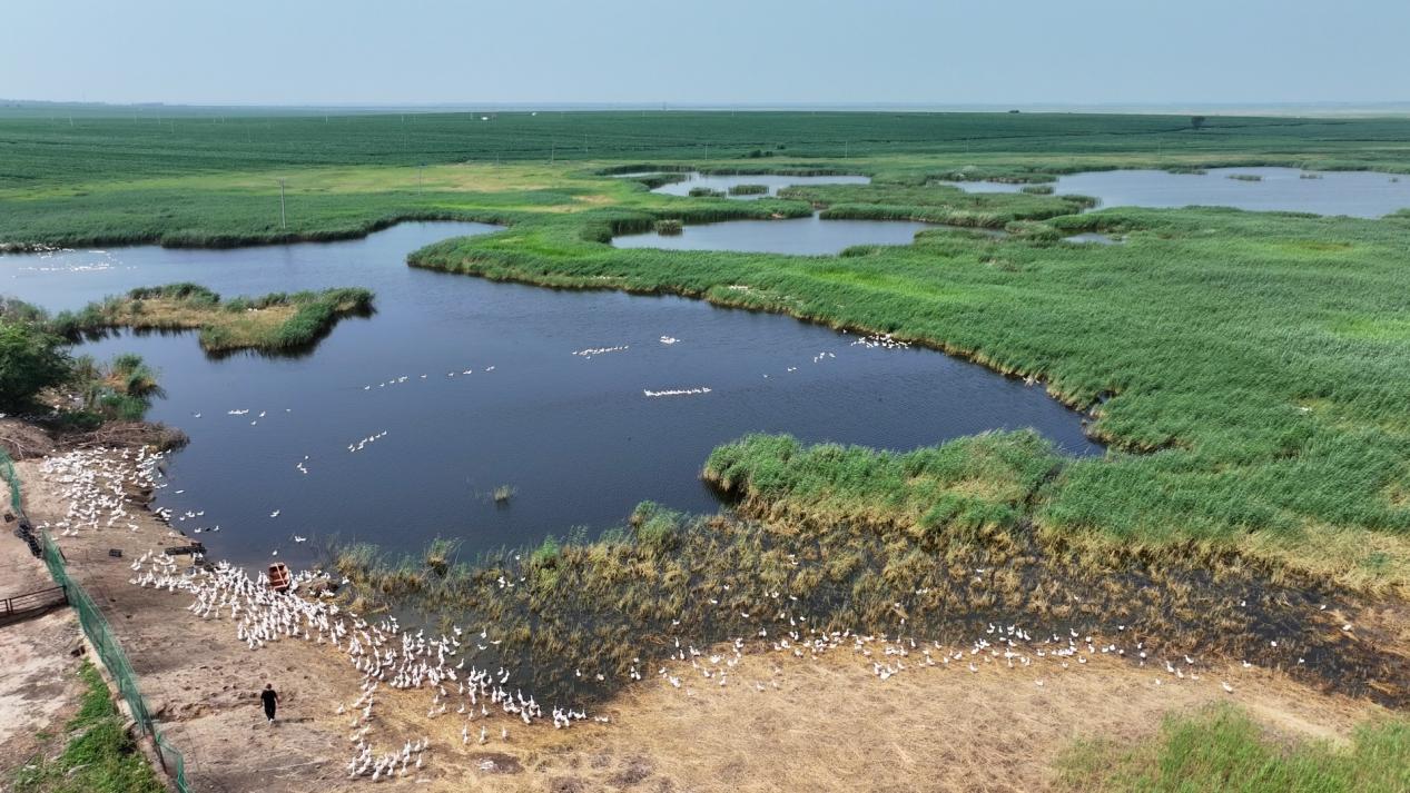 初秋的烟筒屯镇,湿地芦苇荡绿意盎然、生机勃勃。养殖户朱刚正忙着将千余只大鹅赶至水边觅食。鹅群“嘎嘎”的鸣叫声此起彼伏,奏响了乡村最美妙的“增收曲”。“我在烟筒屯镇养鹅已经很多年了,这片湿地是我们最宝贵的资源。”朱刚说,“良好的生态环境让鹅群羽毛光亮、体质健壮,也帮我们打开了销路。接下来我打算适度扩大规模,让更多人吃上放心鹅肉,把这份生态养殖的成果分享出去。”