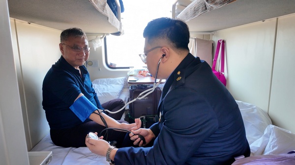 为了让“候鸟”旅客出行更加舒心,该车队针对老年旅客的特殊需求,构建了全方位的适老服务体系:在列车配备的“爱心服务箱”中,老花镜、放大镜、热水袋等物品一应俱全;乘务人员均接受过急救培训,具备应急处置能力;在卫生间等关键区域增设防滑地垫等15项适老服务细节,共同打造“把家搬到火车上”的舒适之旅。