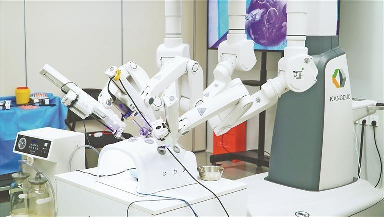 哈尔滨思哲睿自主研制的康多手术机器人在作业中(本报记者 彭溢摄)