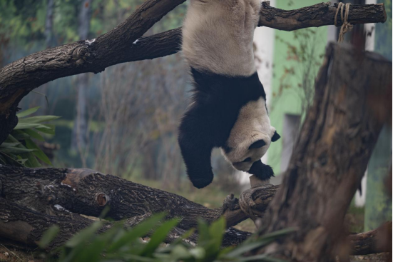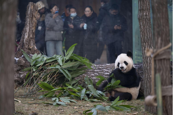 大熊猫“芝士”与游客互动