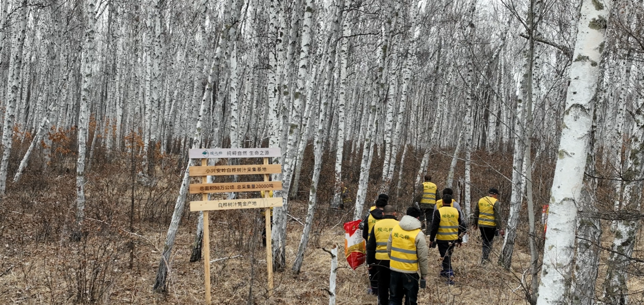 当早春4月的寒意尚未散尽,黑土地上的积雪悄然消融,兴安岭百万公顷原始白桦林从沉睡中苏醒。林间,工人们穿梭忙碌,熟练地将采集工具固定在树干上,清澈透明的白桦树汁缓缓流入采集袋——这为期仅12天的春日馈赠,正成为撬动地方绿色发展的新支点。
