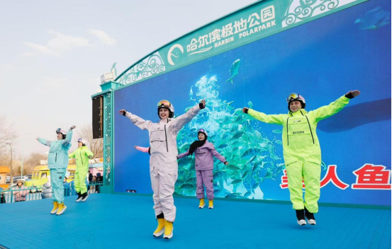 13时许,极地广场人头攒动、热闹非凡。俄罗斯演员带来的特色歌舞演出精彩纷呈,点燃了现场氛围;主持人与游客间的互动问答环节趣味十足,观众踊跃参与,现场笑声与欢呼声不断。13时30分,活动重量级主角“淘学企鹅”正式登场。“终于见到‘淘学企鹅’了!太可爱了!”刚从南方赶来的游客李女士举着手机追拍企鹅小分队,语气里满是兴奋。