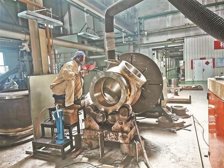 哈电阀门二车间焊接工人正在焊接机组配套旁路阀体(图片由受访单位提供)