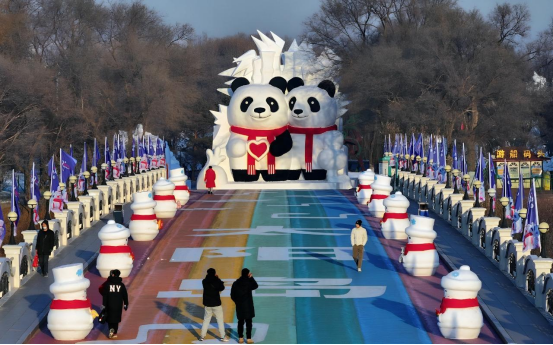 从“雪马呈祥”迎宾区的生肖年景观,到“哈尔滨欢歌”沉浸区的别具一格空间体验;从“套娃风情”欧陆区的文化符号串联,到“巨兽家园”奇幻区的震撼与亲切;从“雪冠”画卷区的超大尺寸景观设计,到“国宝朋友”IP区的沉浸式冰雪大熊猫乐园……每一处都充满创意与惊喜,让游客在欣赏雪景的同时,也能感受到冰雪艺术的无限魅力。