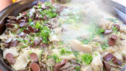 东北炖菜:铁锅炖大鹅、小鸡炖蘑菇、猪肉炖粉条是冬季标配,咕嘟冒泡的铁锅搭配玉米饼子,暖心又暖胃;杀猪菜酸爽开胃,尽显东北风味。