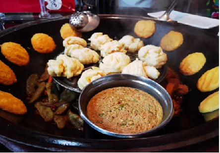 民族风味:鄂伦春手把肉肥瘦相间,蘸蒜泥食用香气扑鼻;柳蒿芽炖排骨、柳蒿芽炖土豆是鄂族特色,清新解腻;俄罗斯大肉串分量十足,炭火烤制后肉香四溢。