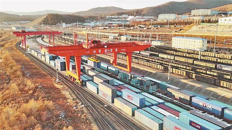 绥芬河铁路口岸换装货场(本报记者 杜怀宇摄)