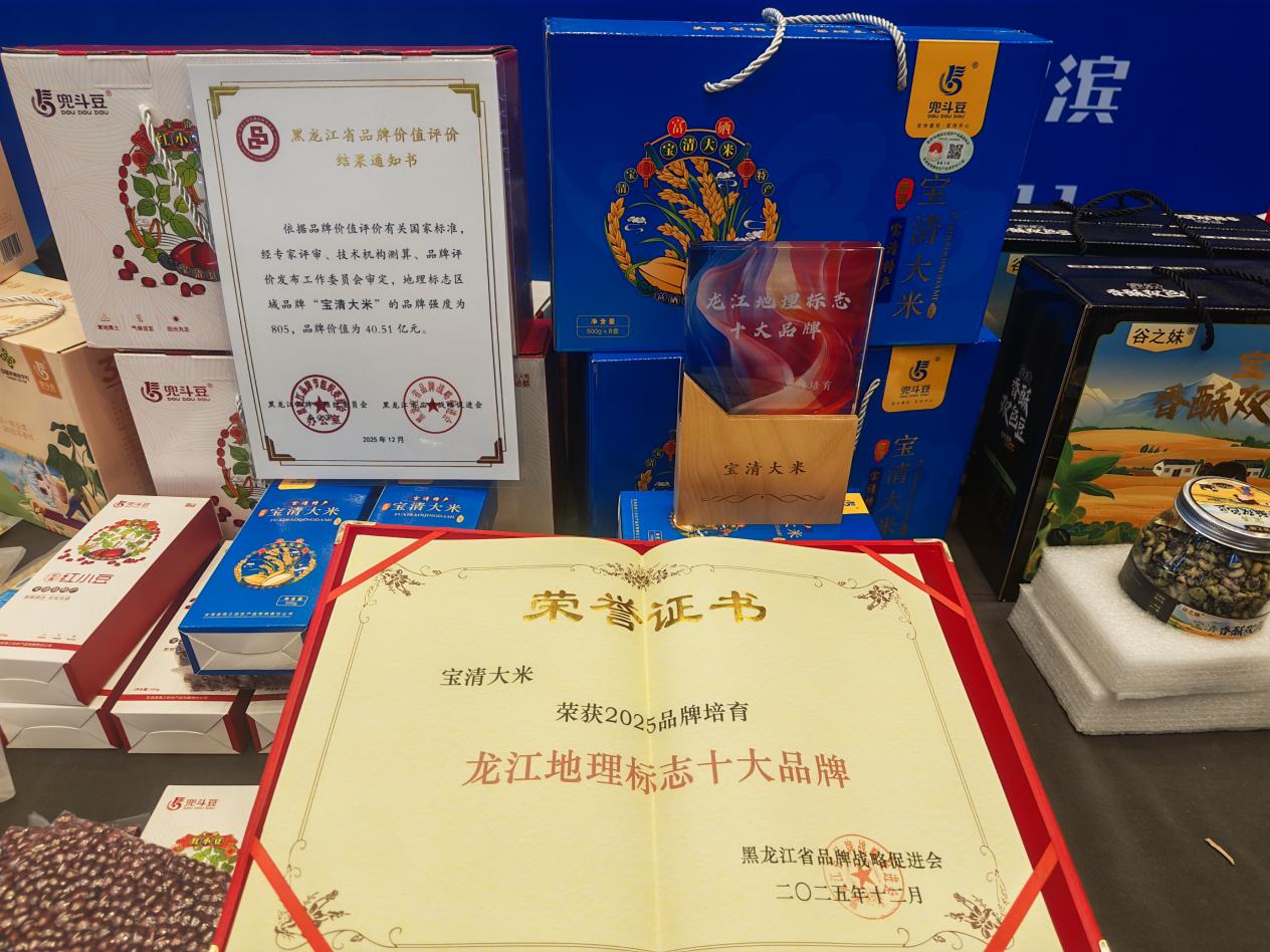 12月11日,“第九届黑龙江品牌节•2025黑龙江省品牌价值发布大会”在哈尔滨举行。会上,“宝清大米”获评“黑龙江省地理标志十大(区域)品牌”,品牌强度达805,品牌价值评估为40.51亿元。