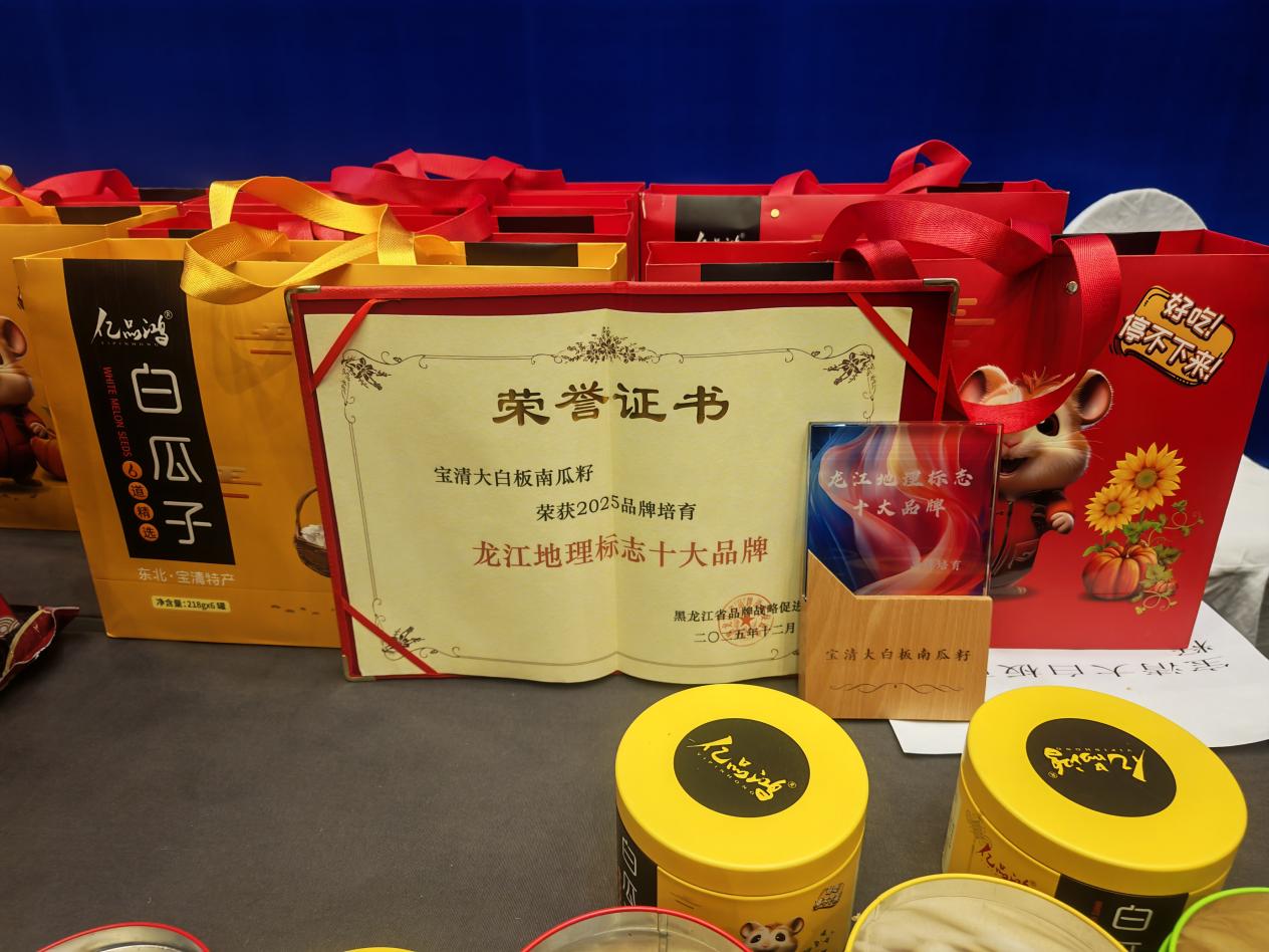 12月11日上午,“第九届黑龙江品牌节•2025黑龙江省品牌价值发布大会”在哈尔滨市华旗礼堂举行。本次大会由黑龙江省市场监督管理局、省工业和信息化厅等单位主办,汇聚全省优质品牌、龙头企业及行业专家,聚焦品牌价值提升与产业高质量发展,现场发布多项省级品牌荣誉。国家地理标志产品“宝清大白板南瓜籽”凭借深厚产业底蕴、强劲市场竞争力及广泛国际影响力,荣获2025品牌培育——龙江地理标志十大品牌,品牌强度825,品牌价值26.32亿元。