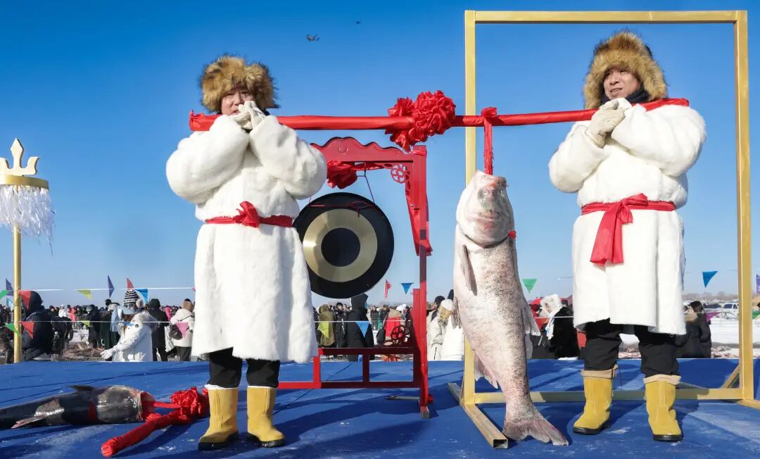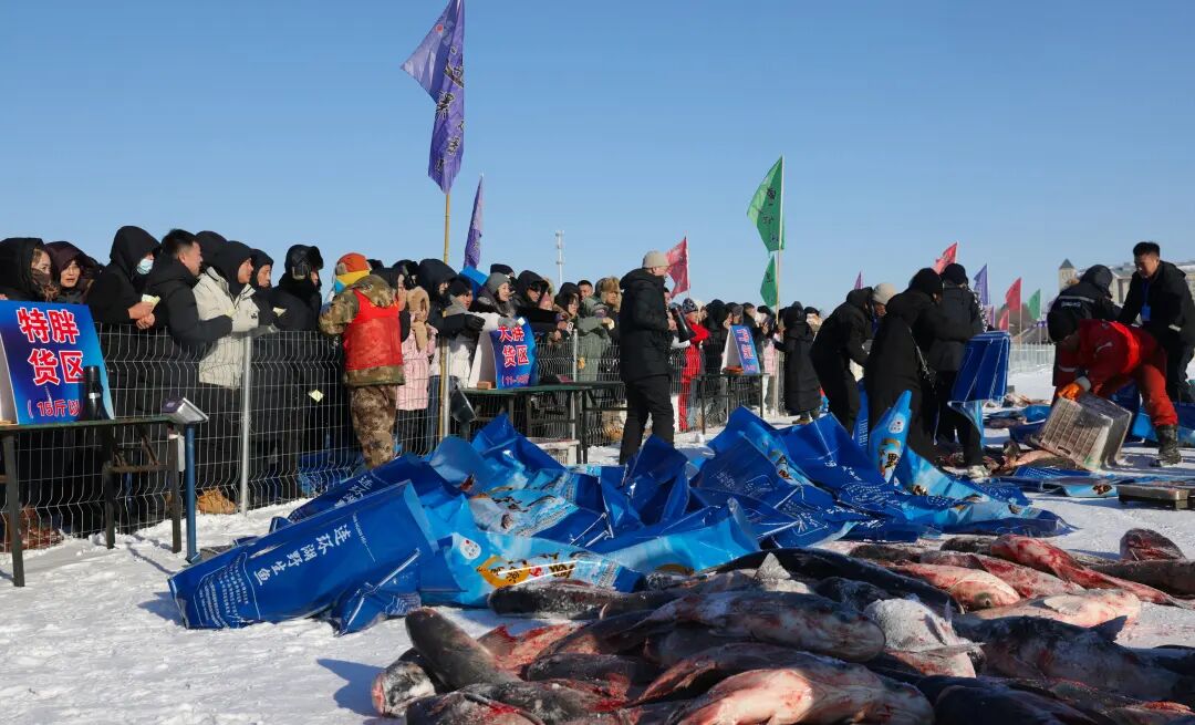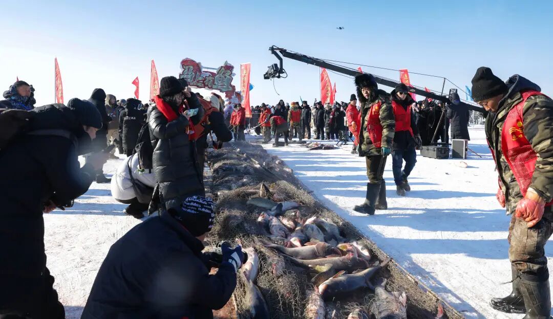 千里冰封的连环湖银装素裹、人声鼎沸,一场声势浩大的渔猎盛宴如约拉开序幕。作为2025黑龙江“冷水鱼•冬捕季”系列活动的省级主会场核心活动,这场以千年渔猎文化为内核的“冰湖腾鱼”景象震撼登场,不仅吸引了全国各地游客慕名而来,现场上演的激烈头鱼拍卖更将氛围推向高潮。众人共赏渔歌盛事,沉浸式感受冰雪与民俗交融的独特魅力,见证“中国冷水鱼之都”的冬日豪情。