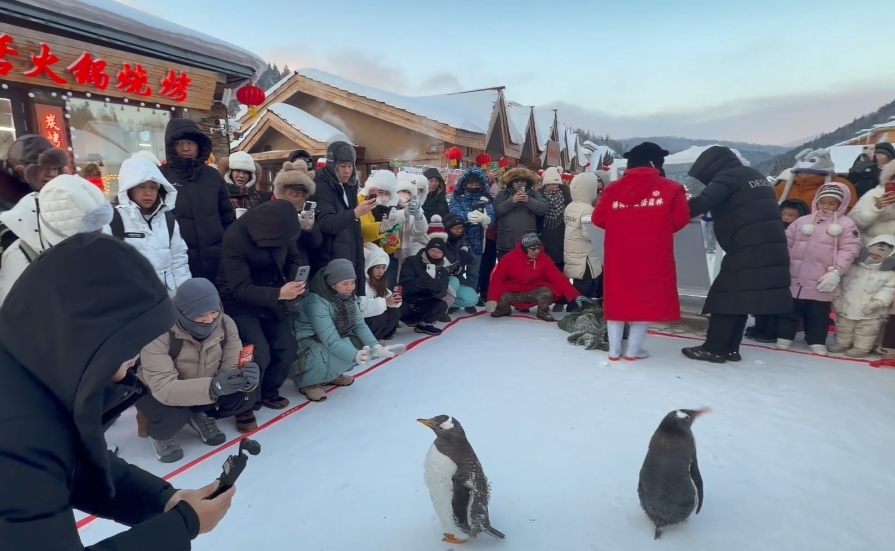 “天这么冷,小家伙们居然还这么活泼有活力!”来自广东的刘女士难掩激动,“在雪乡看企鹅,真的是不一样的体验,又惊喜又好看!”在她眼里,这群远道而来的小家伙,是冰雪世界里的灵动精灵,更是凛冬时节里跃动的温暖生机。
